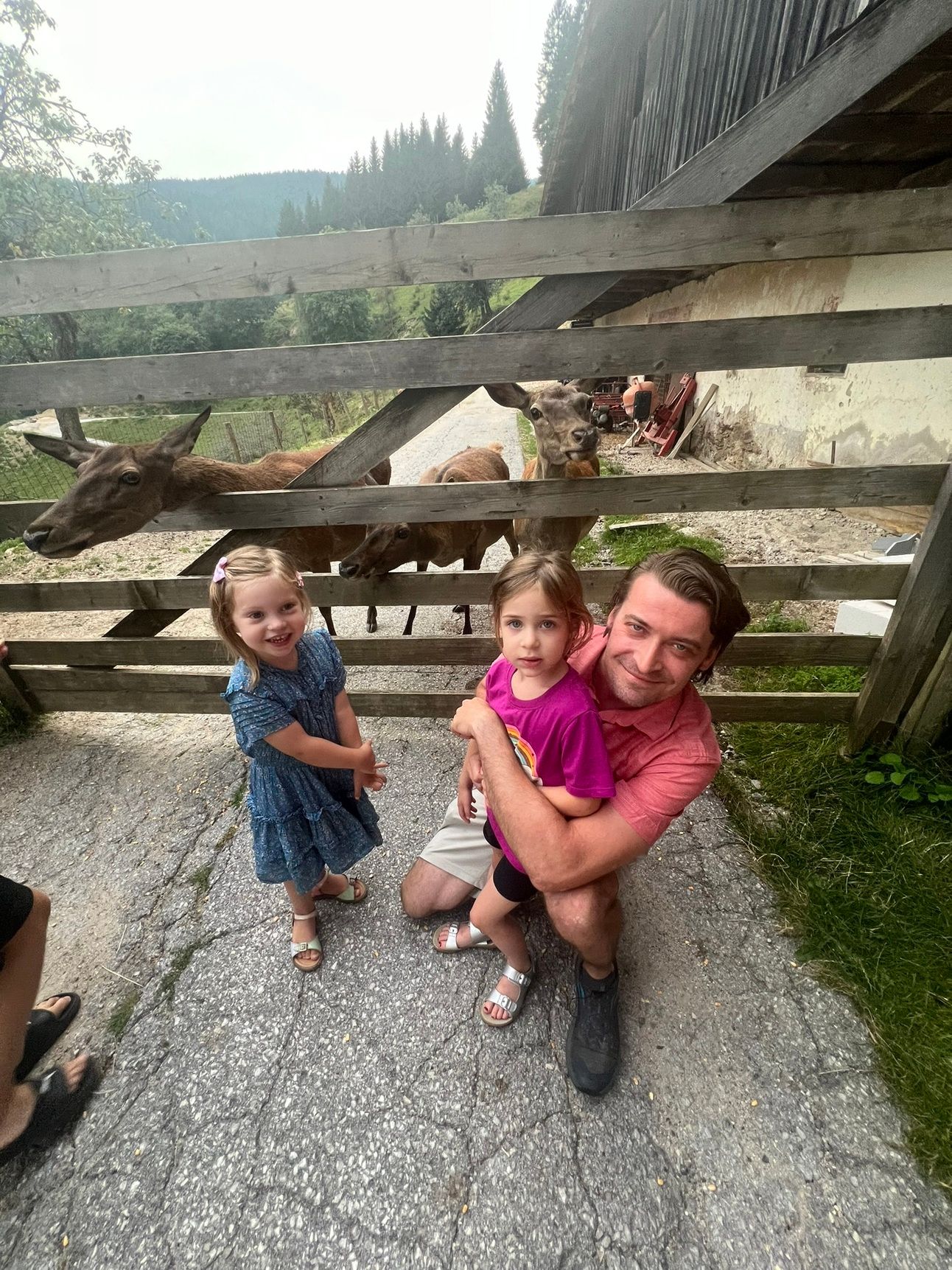 Later that evening, rather than eating on site, all farm guests caravanned to a deer farm approximately 20 minutes away. We ate a tasty dinner of salami, pate, goulash, polenta, and cake, and tried not to think too hard about the surviving deer who roamed the property. The kids were given the opportunity to feed the deer, but Calla seemed horrified by the prospect of deer slobber (same, girl) so just watched.